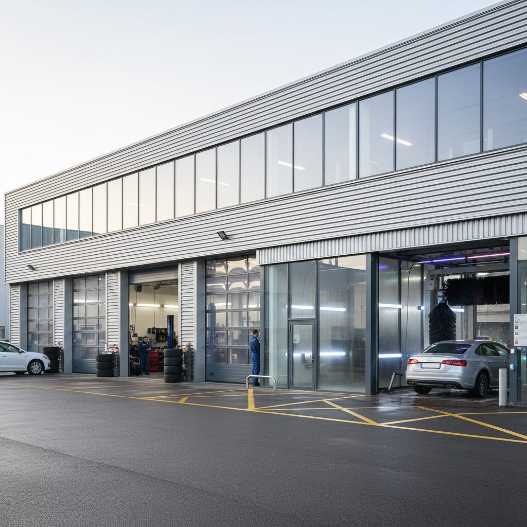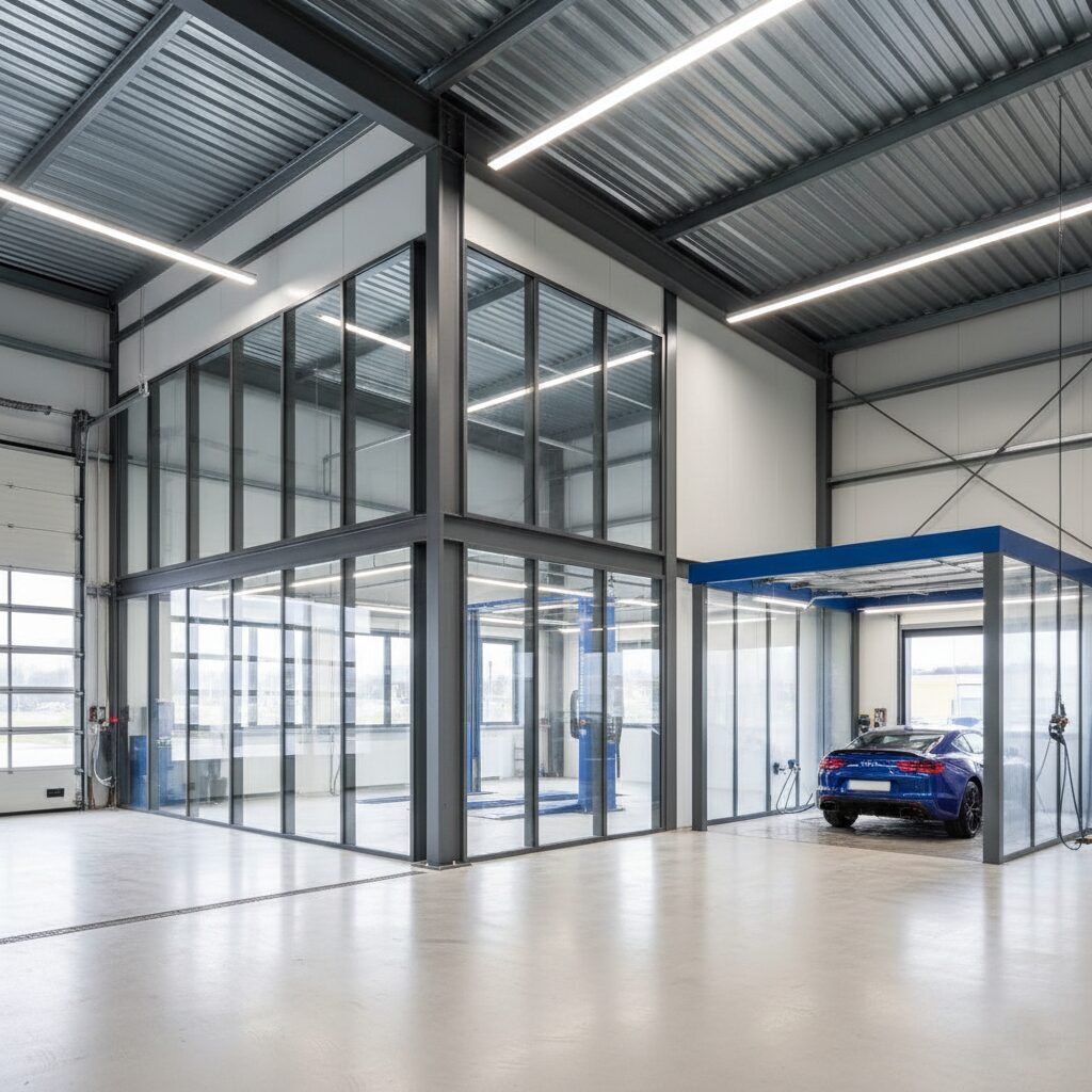 - • Vizuālā pievilcība: Iespēja kombinēt metāla paneļus ar lielām stikla fasādēm autosalona efektam.