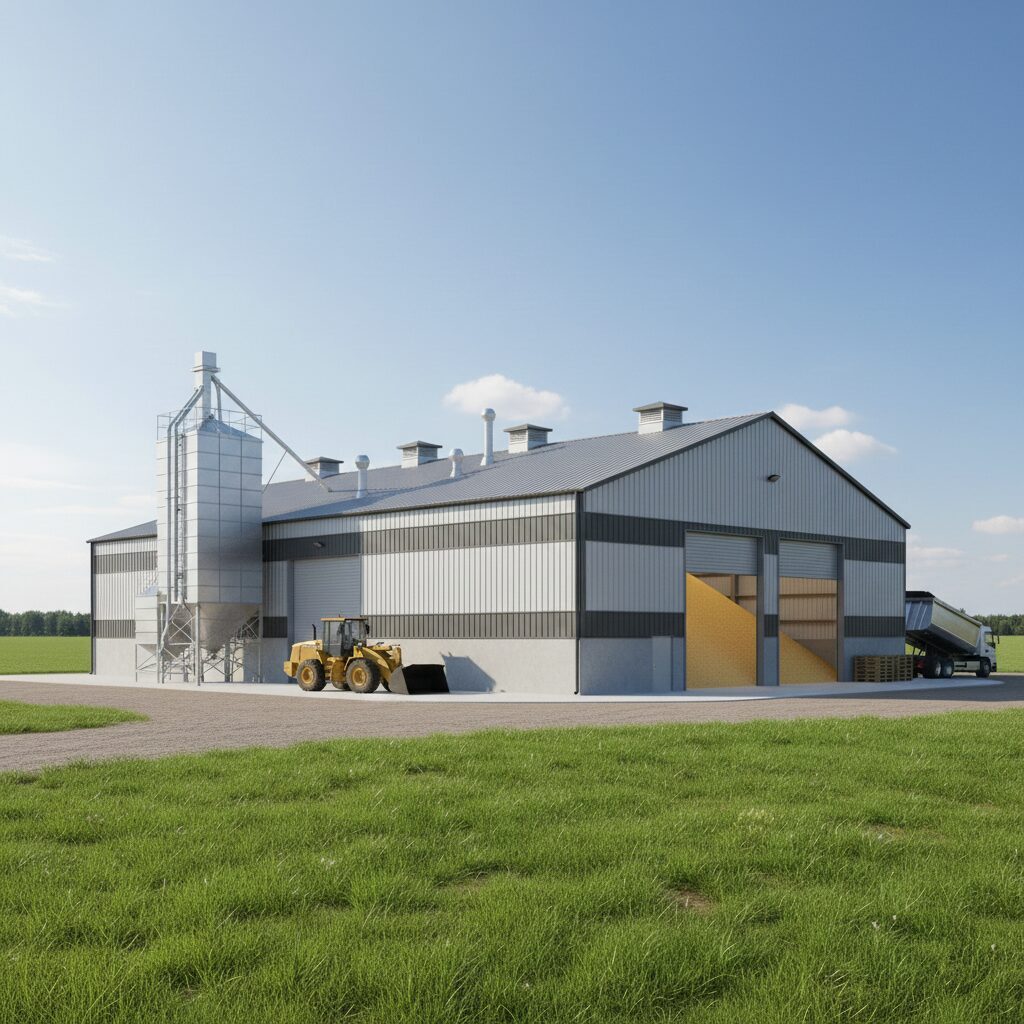 Specializētas būves graudu, minerālmēslu vai šķeldas uzglabāšana. Pieejami ar siltinājumu un bez siltinājuma.